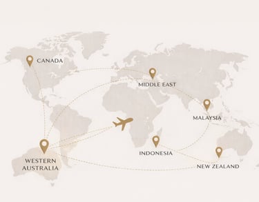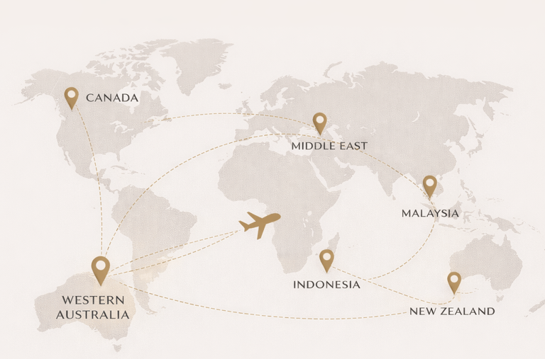 While we are proudly based in Western Australia, Aubique Living operates with a global network of partners and agents across the Middle East, Malaysia, Indonesia, New Zealand, and Canada.